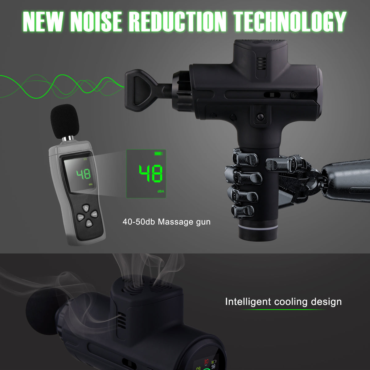 Myologix Physio Gun has multiple features.It has a display screen which shows Speed & Frequency display-9 gear adjustment and also shows the setting of that massage gun and also battery power display. It also measures body temperature and heart rate.it has a 24v 5200 mAh rechargeable cordless battery and a battery removal button.It has different removable massage heads.which you can change according to your muscle.